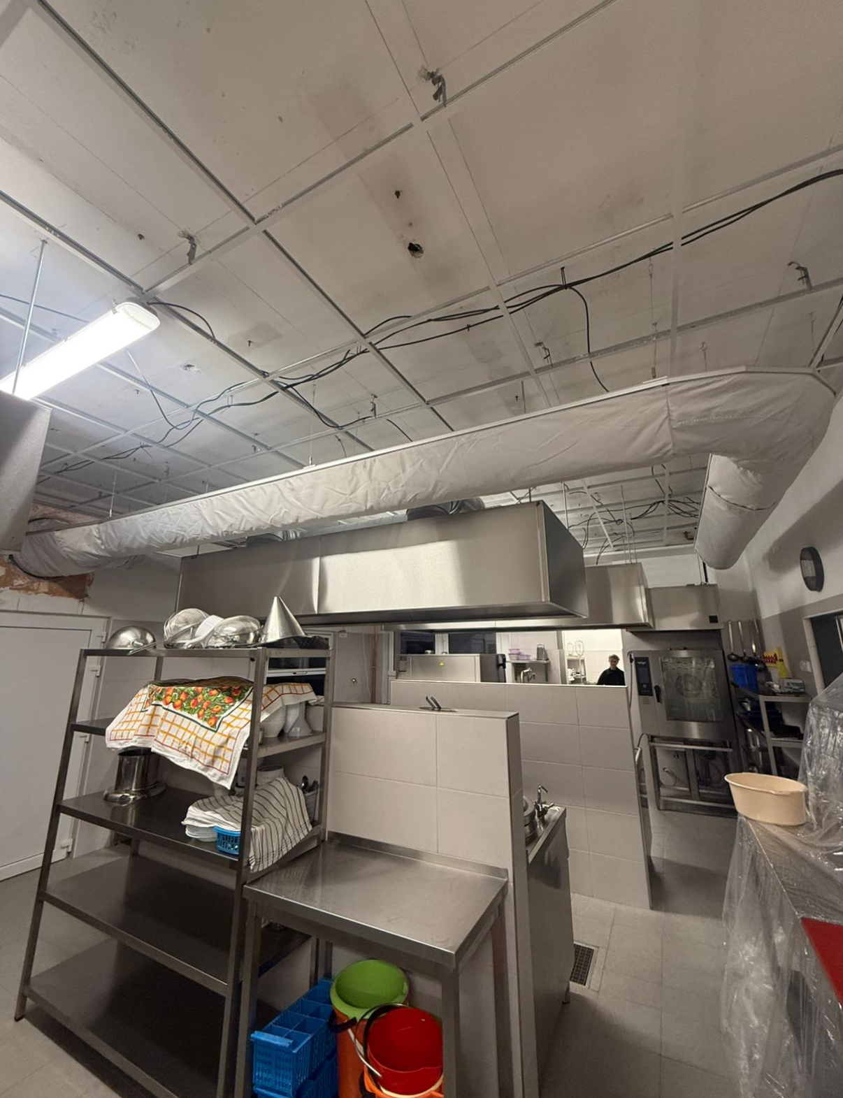 Vzduchotechnika a digestoře centrální kuchyně.