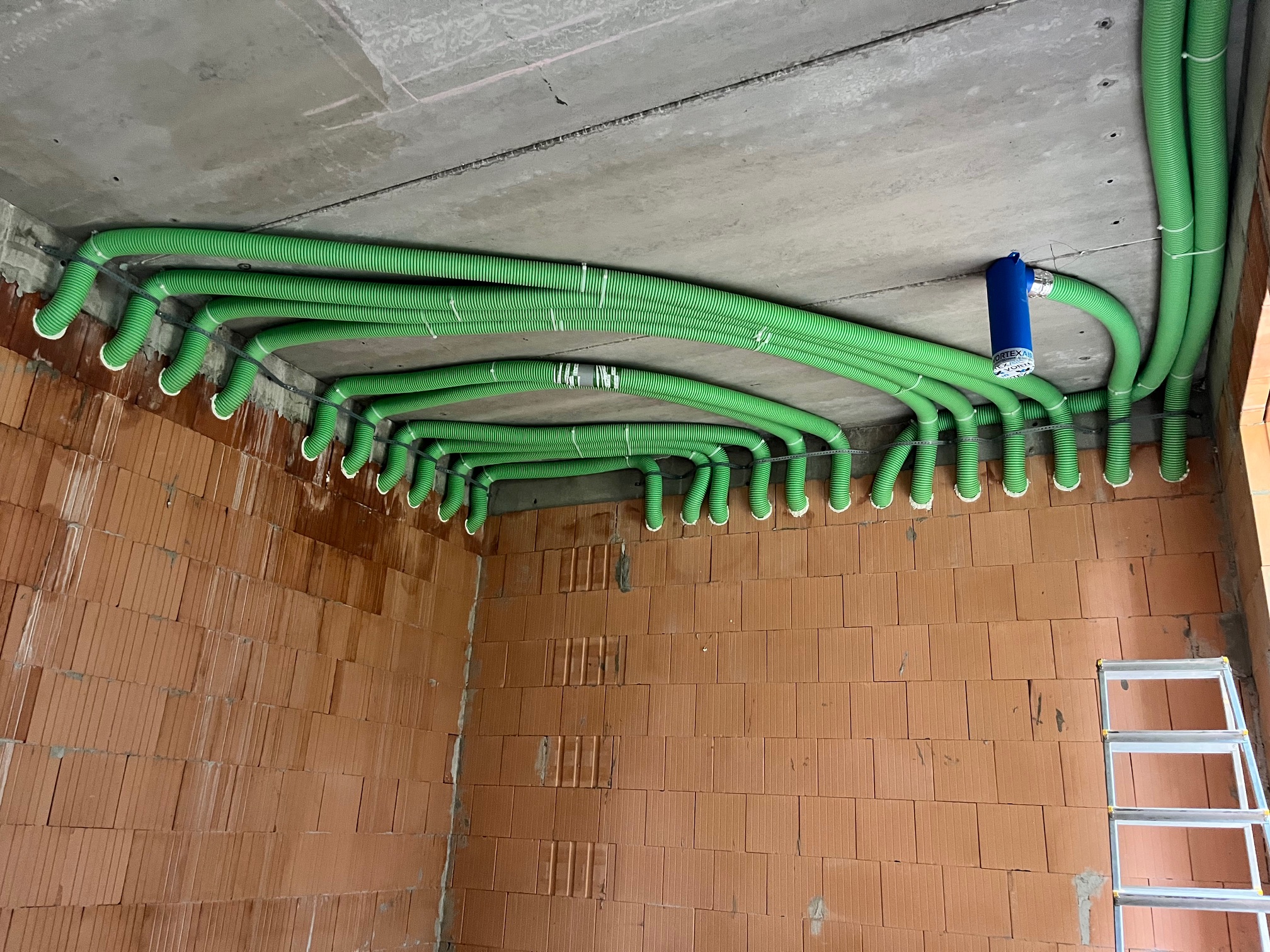 Montáž centrálních rozvodů Rekuperace Daphne v novostavbě RD.